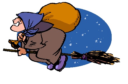 Quando, pentita, cercò di raggiungerli, non ci riuscì. Da allora, nella notte tra il 5 e il 6 gennaio, volando su una scopa con un sacco sulle spalle, passa per le case a portare ai bambini i doni che non è riuscita a dare a Gesù Bambino