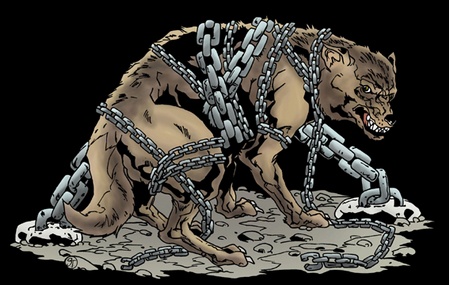 Il Fenrir era un lupo molto grande, un terrificante mostro figlio del dio Loki e dell’orchessa Angrbodhra ed incarnava, presso le popolazioni nordiche, le paure per il lupo. Quando le divinità vennero a conoscenza di una profezia in cui si affermava che un giorno il lupo e la sua famiglia sarebbero stati responsabili della distruzione del mondo, lo fecero prigioniero e lo rinchiusero in una gabbia. Il dio della guerra, Tyr, fu l’unico ad avere il coraggio di nutrire il lupo e prendersene cura.