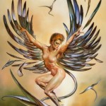 Secondo la mitologia, una di esse concepì con Zefiro i cavalli di Achille. Le Arpie sono tre: Aello (burrasca), Ocipete (Colei che vola veloce) e Celeno (l’oscura), figlie di Taumante ed Elettra, sono potenti nel volo e hanno dei bellissimi capelli.