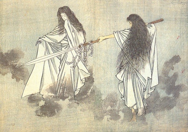 Una delle leggende giapponesi più interessanti è legata al mito della creazione raccontato dal Kojiki e dal Nihon Shoki, testi antichissimi, dell’VIII secolo, parte della letteratura giapponese antica. Secondo questa leggenda l’universo era oscuro e silenzioso e dopo tanto caos senza limiti e senza forme le particelle iniziano a muoversi e quelle più leggere danno vita alle tre divinità creatrici mentre quelle più pesanti danno vita alla Terra: un ammasso che ha impiegato milioni di anni a solidificarsi. Appena ciò accade altre divinità scaturiscono dal pianeta ma molte non sanno fare altro che esistere, tranne Izanagi e Izanami (“l’uomo che invita” e “la donna che invita”), parte del trio iniziale in cielo che vengono chiamati sulla terra per sistemare e creare la vita, partendo ovviamente dal Giappone e dalla sua famiglia imperiale.