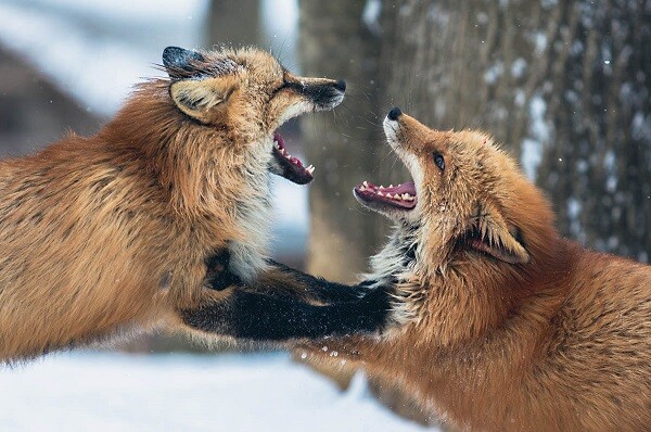 I Kitsune fanno parte della cultura giapponese. Sono conosciuti per essere delle creature magiche e intelligenti. La loro forza aumenta man mano che l’età avanza e hanno la capacità di muoversi tra la loro forma originaria di volpe e quella umana. I Kitsune possono avere fino a nove code e possono trasformarsi in umani quando arrivano ai 100 anni di età e di solito preferiscono trasformarsi in un uomo anziano, o una donna o una ragazza. Una delle loro particolarità, secondo le leggende, è quella di poter clonare l’aspetto di una persona. Queste creature odierebbero i cani e li temerebbero. Ma avrebbero la capacità di entrare nei sogni della gente e dare vita a illusioni ingannevoli.